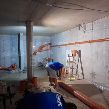 Изграждане на канализация в основи на новострояща се жилищна сграда
